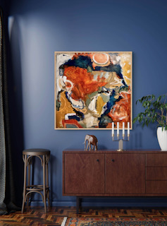 I love painting imaginary “aerial views”, my love for earth tones, textures, and mark making are highlighted in this 36×36 inch canvaswrap, ready to hang. No frame neccesary. This dynamic piece creates an interesting conversation piece wherever displayed in home or commercial space