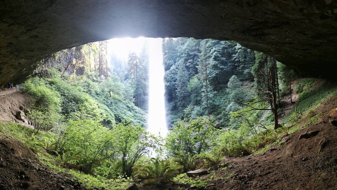 Standing inside a cave while looking behind a waterfall is a breathtaking and immersive experience. The cave, cool and slightly damp, has walls formed by centuries of erosion, offering a natural shelter from the elements outside. As you stand in the darkness of the cave, your eyes are drawn to the glistening, curtain-like cascade of water flowing down before you. The waterfall’s constant rush creates a powerful, rhythmic sound, filling the air with a natural white noise that drowns out all other distractions.