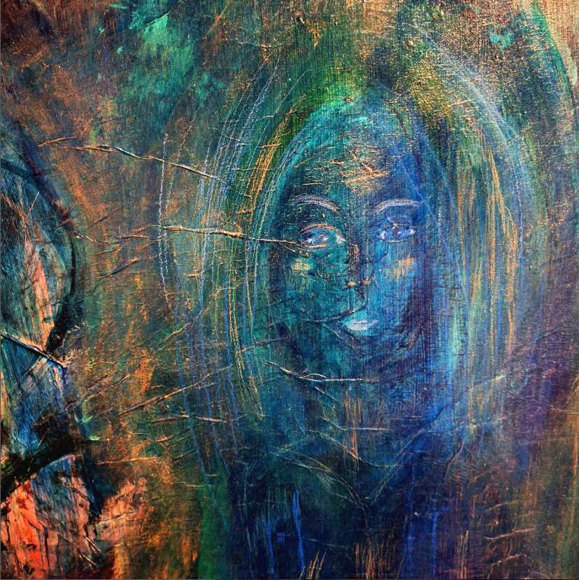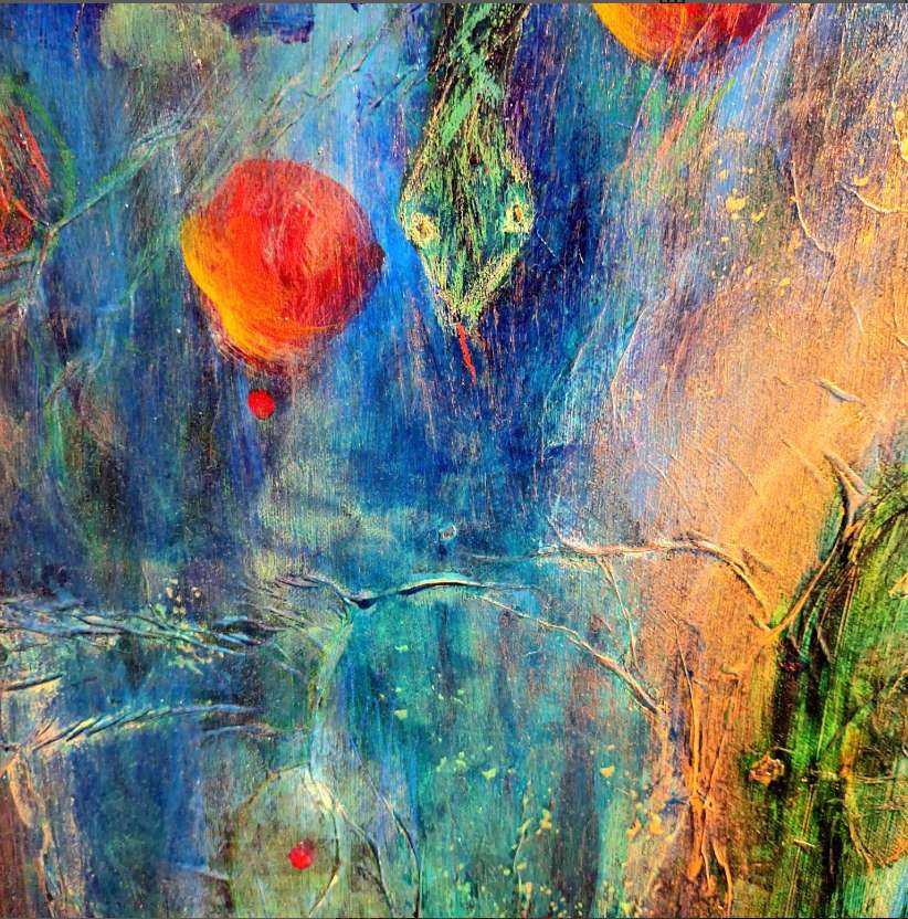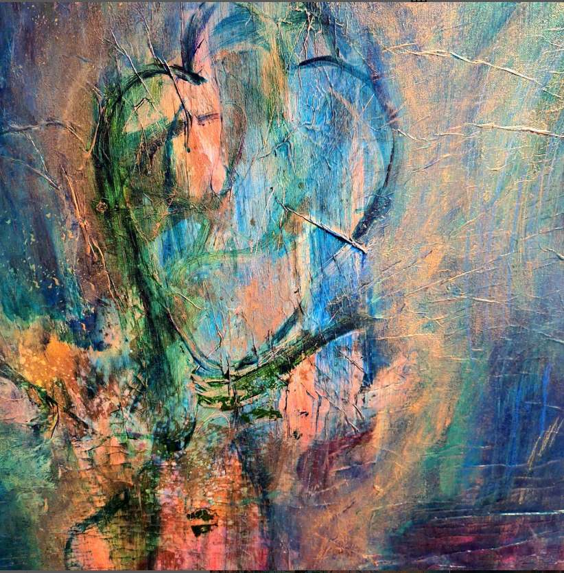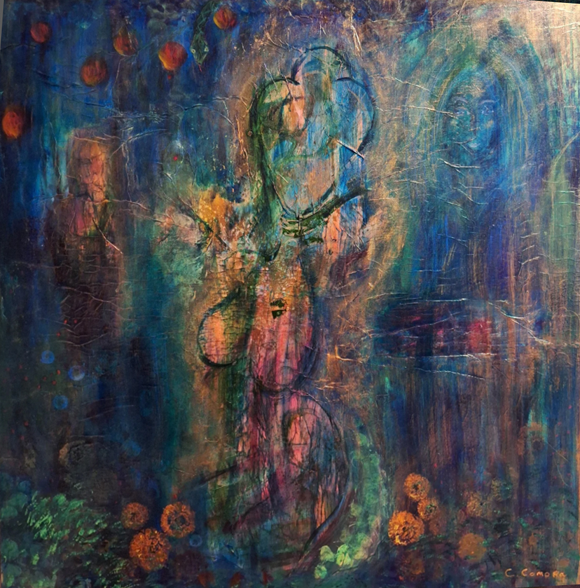 “Eve” 48″ x 48″ acrylic mixed media painting on canvas.