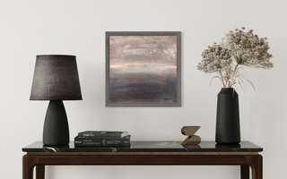 Evening reflections is the perfect focal point to create a peaceful mood in any setting. Rich grays, and heavy acrylic textures echo gentle waves in the late dusky light……available as an unframed 12×12 board.