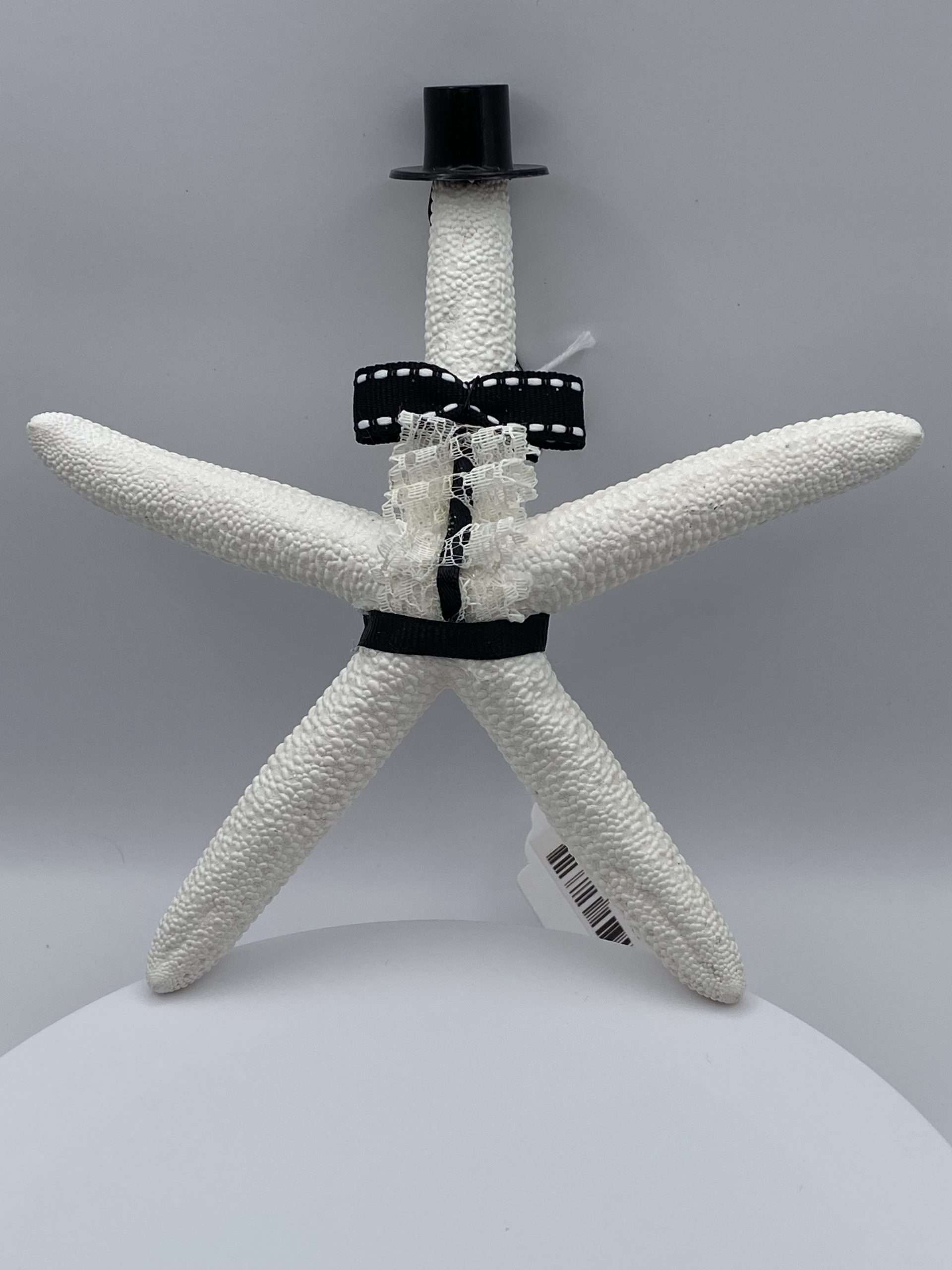 Adorable groom Starfish. Find the matching bride! Hang as an ornament, on your favorite wall, or on your rear view mirror. Reminder of beautiful Siesta Key beach! Fun Coastal Art! Made by Maureen Fox!