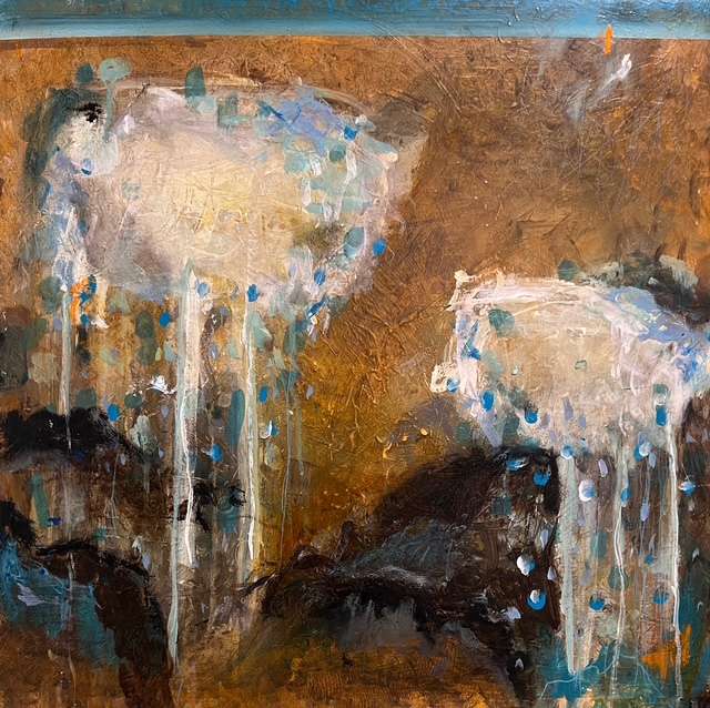 Everyone appreciates the sacred gifts of the water, and the blessings of the mountains and landscape afterward. This painting is available as a 24×24 wood panel, ready to hang.
