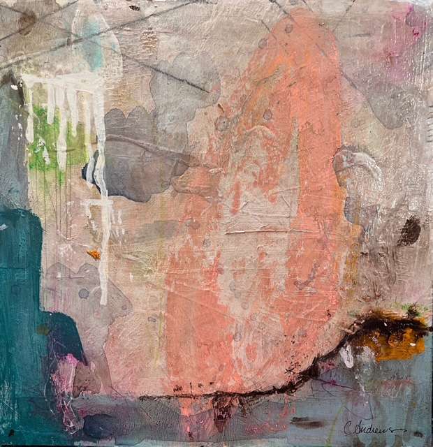 This 12×12 abstract acrylic has plenty of attitude to add joy and energy to your favorite space! The pinks remind me of special sunrise days, a quiet time to enjoy with a great cup of coffee and the solitude of the moments.  And, always, the impending rain clouds as the day heats up!