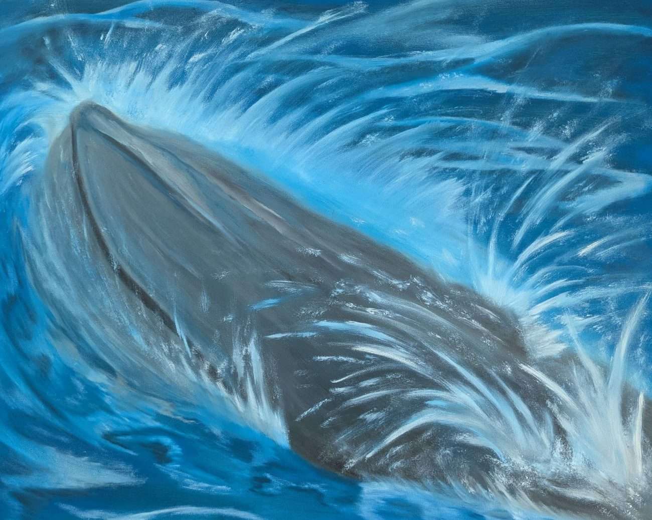 “Last Surge” captures the breathtaking moment a Rice’s Whale breaks through the surface, sending torrents of ocean spray into the air. Painted in sweeping, energetic strokes, the work conveys both the power and fragility of this elusive giant. The deep blues of the Gulf swirl around the whale, symbolizing its rare and precious existence in the wild. This piece serves as both a celebration of marine beauty and a call to protect one of the world’s most endangered whales. Based on a NOAA photograph, used with permit #779-1633. Perfect for marine life enthusiasts, ocean conservation supporters, and collectors seeking art with both impact and meaning.