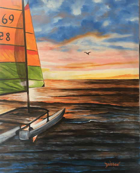 This painting is inspired because where I live in what I describe as paradise aka Siesta Key, Florida. My paintings hang in hundreds of private collections throughout the US, Canada, the UK, Germany, France, Slovakia, New Zealand, and Switzerland. My intention is to create art that is happy and fun for everyone.