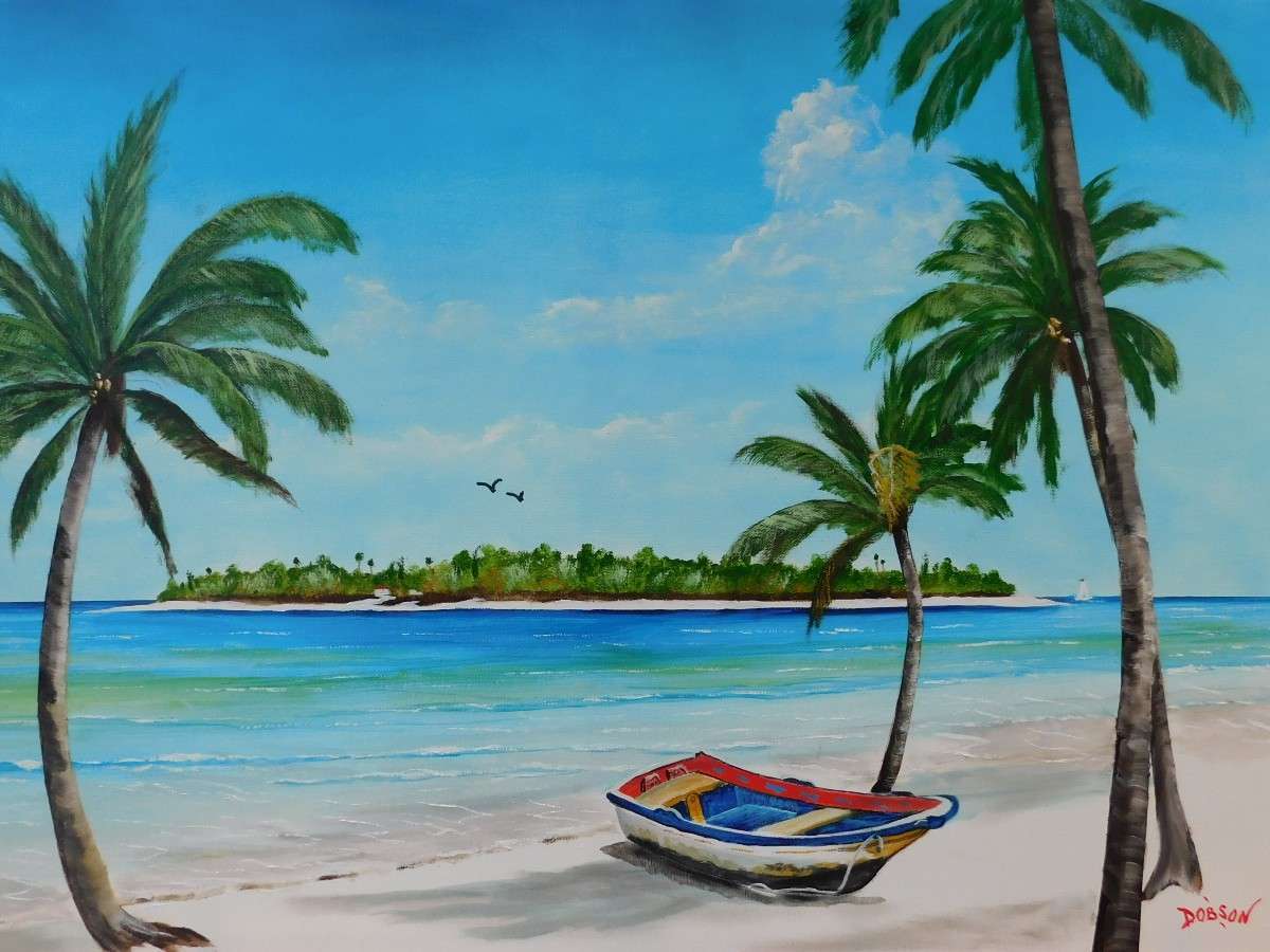This painting is inspired because where I live in what I describe as paradise aka Siesta Key, Florida with an abandon boat on the beach. . My paintings hang in hundreds of private collections throughout the US, Canada, the UK, Germany, France, Slovakia, New Zealand, and Switzerland. My intention is to create art that is happy and fun for everyone.