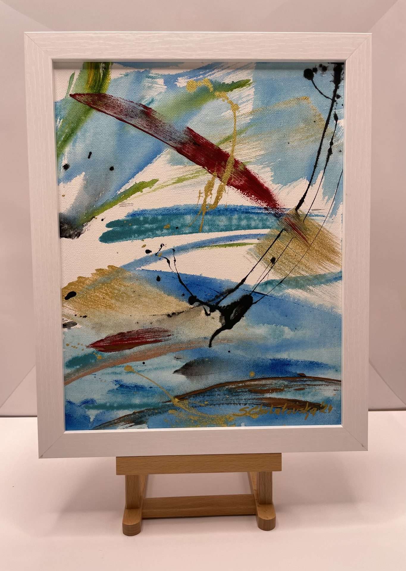 Each piece in this collection is a symphony of colors—deep blues that echo the mysterious depths of the ocean, striking blacks that symbolize the profound and unknown, and bold reds that capture the passion and life force that thrives beneath the surface. What truly sets these works apart is the use of genuine 24-karat gold, carefully applied to create shimmering accents that evoke the sun’s golden rays dancing on the water’s surface. This luxurious touch not only adds a rich, opulent dimension to the paintings but also symbolizes the timeless beauty and enduring allure of the ocean.