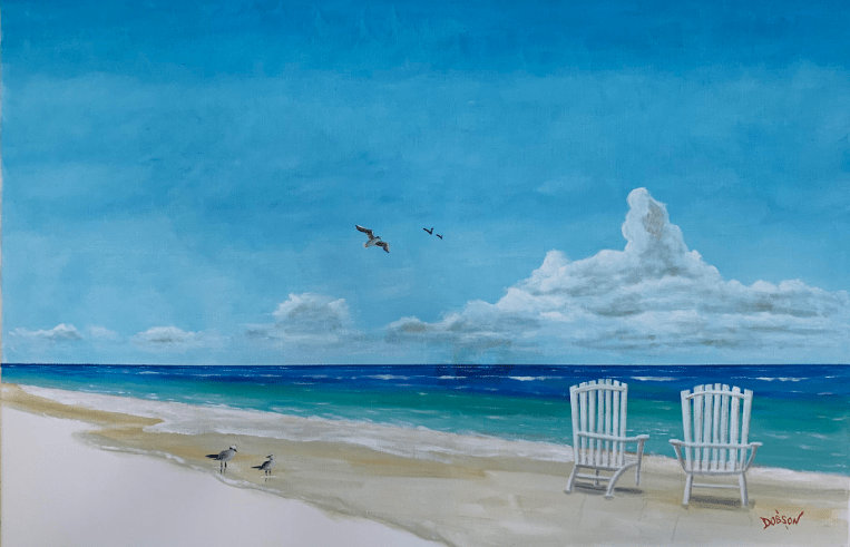 This painting is inspired because where I live in what I describe as paradise aka Siesta Key, Florida. My paintings hang in hundreds of private collections throughout the US, Canada, the UK, Germany, France, Slovakia, New Zealand, and Switzerland. My intention is to create art that is happy and fun for everyone.