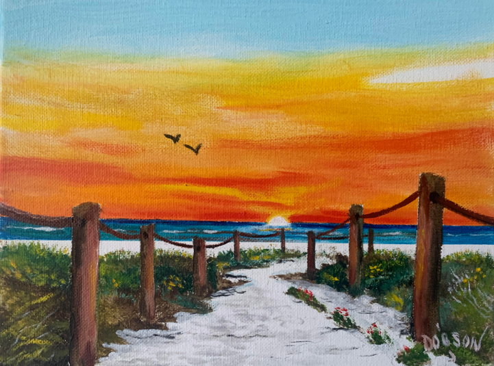 This painting is inspired because where I live in what I describe as paradise aka Siesta Key, Florida. My paintings hang in hundreds of private collections throughout the US, Canada, the UK, Germany, France, Slovakia, New Zealand, and Switzerland. My intention is to create art that is happy and fun for everyone.