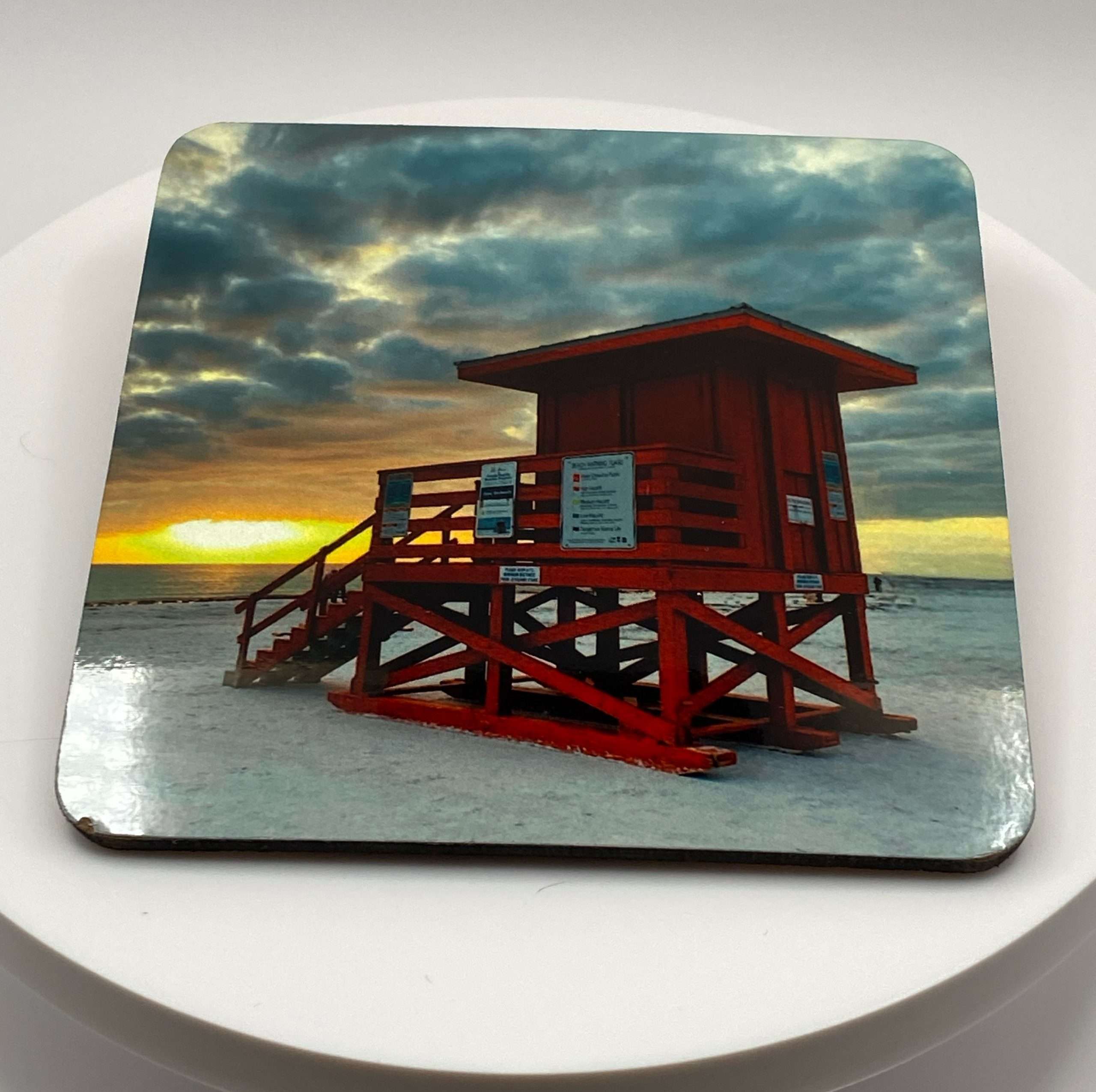 This coaster reminds you every day of beautiful Siesta Key and the lifeguard chairs. Siesta Key Number One Beach, “Siesta Key Magic” Magical Red Lifeguard Stand
