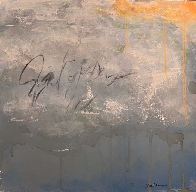 Heavy skies of summer release the gifts of rain and imagined sacred messages are released upon a thirsty landscape. This is an unframed 12×12, painted on birch panel, ready to hang.