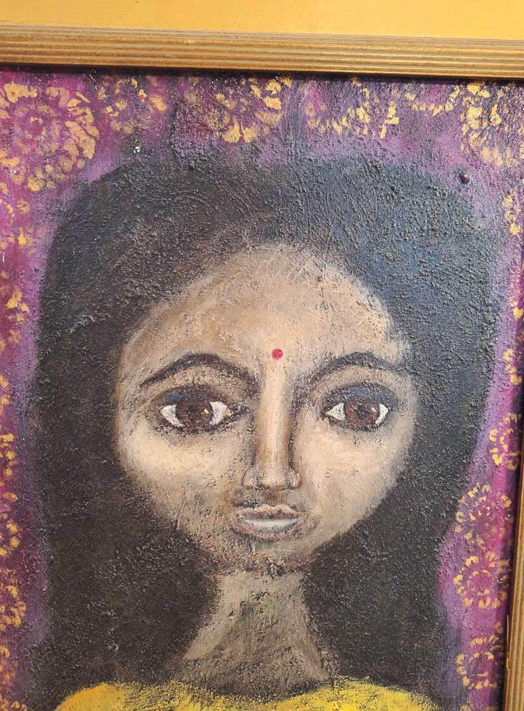 “Sunita” is a 16″ x 20″ acrylic painting. She measures 23 1/2″ x 28″ framed.