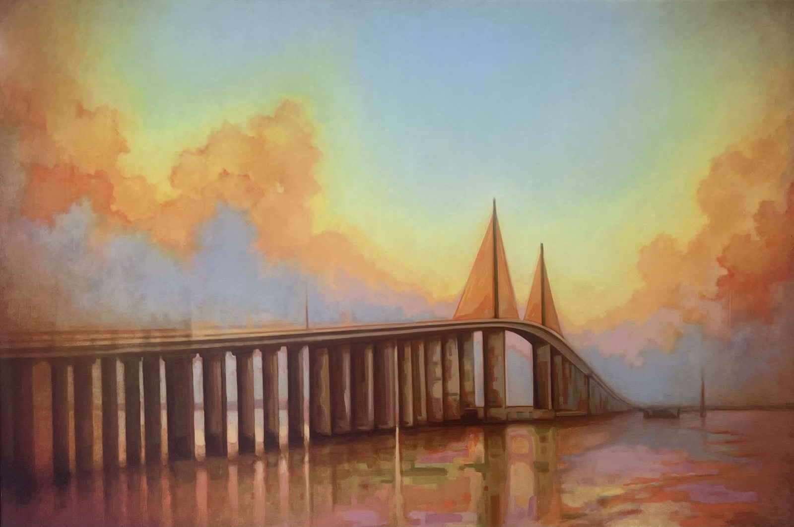 36×24 inch canvas print of “Sunrise Skyway”, an oil painting by Jason Wightman