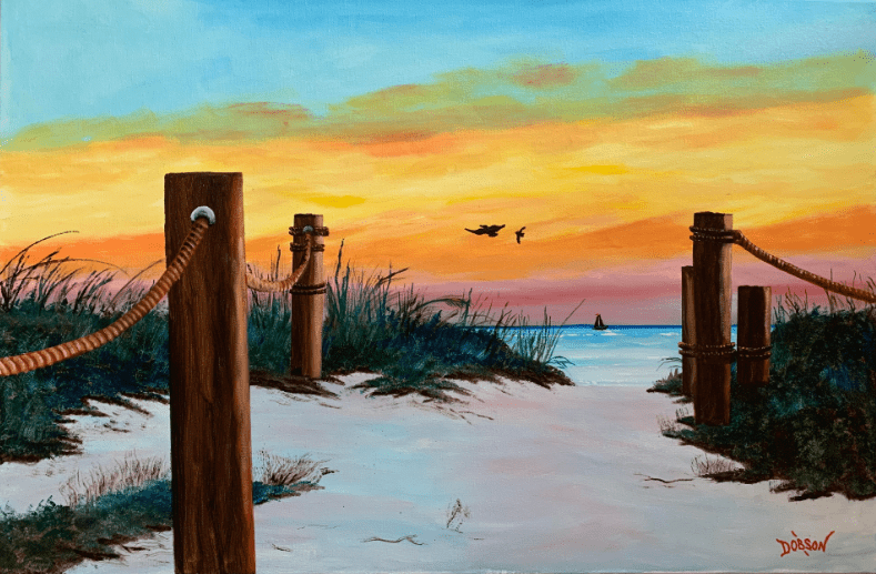 This painting is inspired because where I live in what I describe as paradise aka Siesta Key, Florida. My paintings hang in hundreds of private collections throughout the US, Canada, the UK, Germany, France, Slovakia, New Zealand, and Switzerland. My intention is to create art that is happy and fun for everyone.