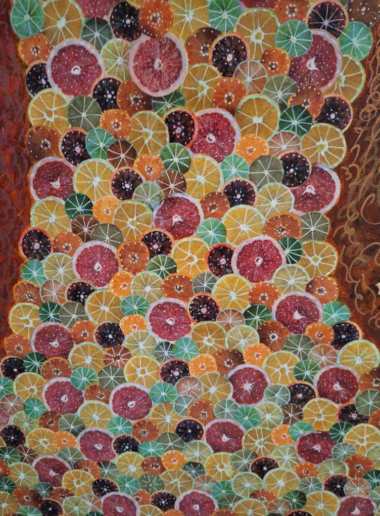 “The Empress” mixed media acrylic & collage folk art. 24″ x 48″