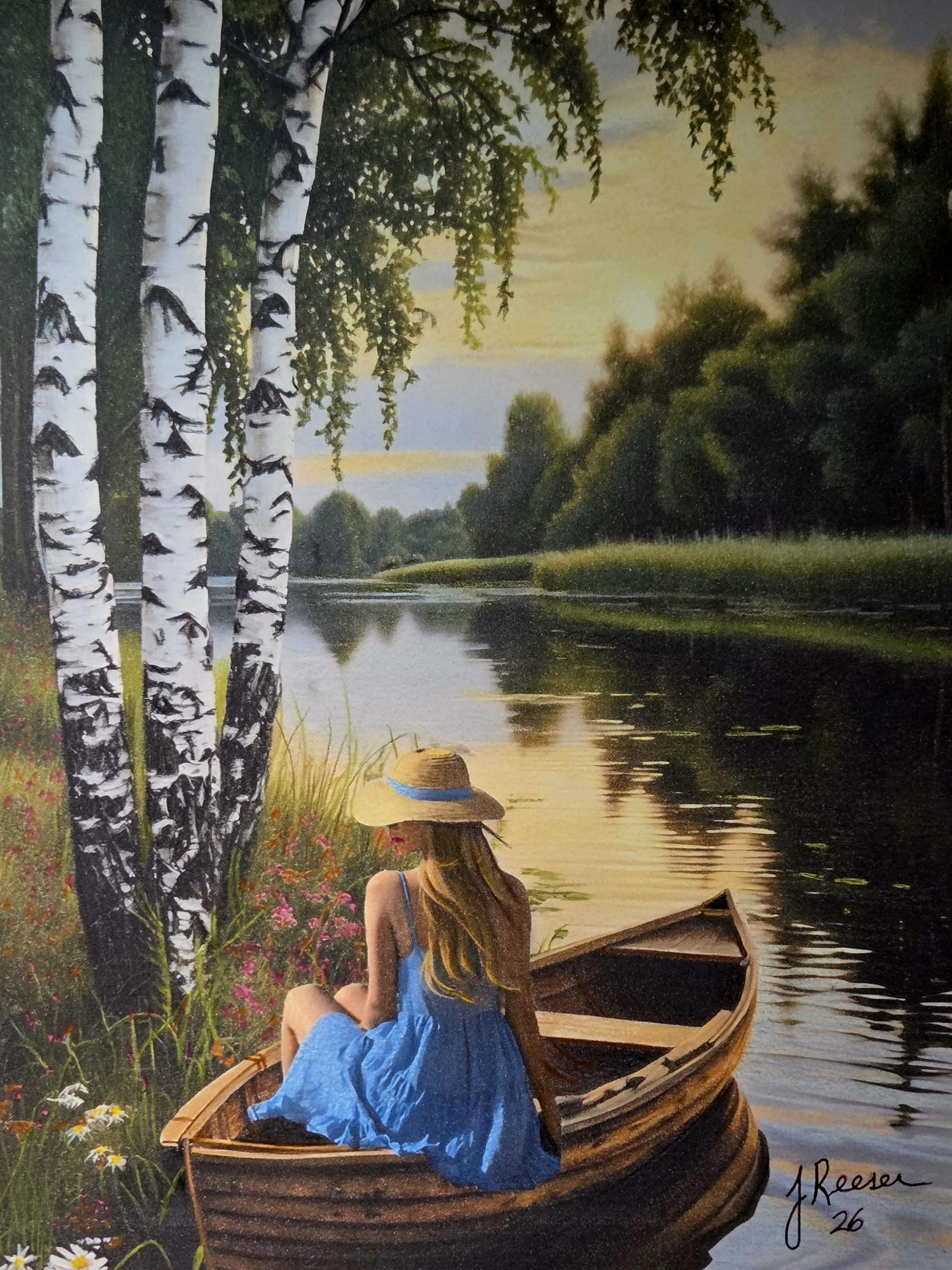 “Une femme en canoë” Prismacolor and Faber Castell Pencils