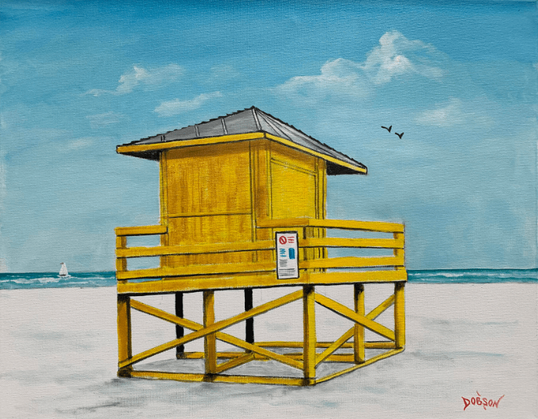 This painting is inspired because where I live in what I describe as paradise aka Siesta Key, Florida. My paintings hang in hundreds of private collections throughout the US, Canada, the UK, Germany, France, Slovakia, New Zealand, and Switzerland. My intention is to create art that is happy and fun for everyone.